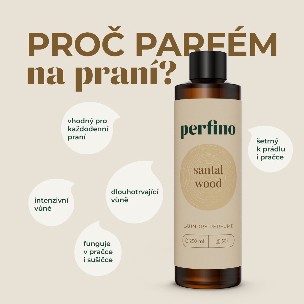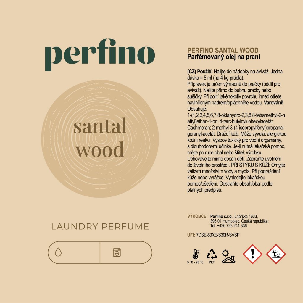 Parfém na praní Santal Wood připomíná vůni vyhřátého dřeva – jemnou, klidnou. Nepoutá pozornost svou silou, ale tím, jak příjemně se usadí v prostoru i na prádle. Je hřejivá, se santalovým základem, lehce suchá a hladká, s čistým, dřevitým tónem, který voní dlouho a přitom neruší. Hodí se pro každodenní praní.