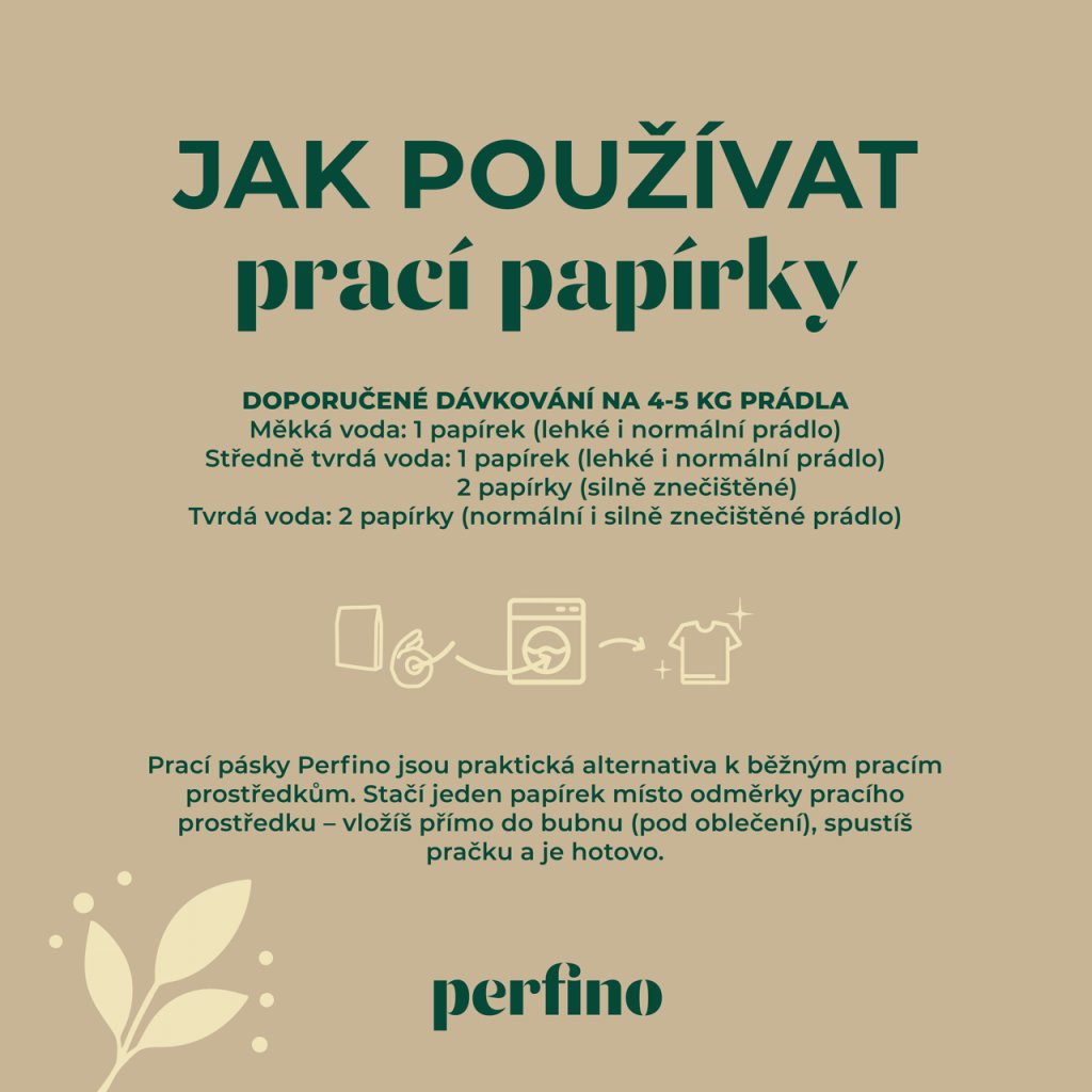 Prací papírky jsou koncentrované proužky, které se při praní plně rozpustí a zanechají tvoje prádlo čisté, voňavé a jemné na dotek. Neobsahují mikroplasty ani fosfáty. Jednoduché dávkování – jeden proužek na jednu várku prádla – ti ušetří čas i místo v koupelně. A díky kompaktnímu balení se skvěle hodí také na cesty, do karavanu nebo do malé domácnosti.