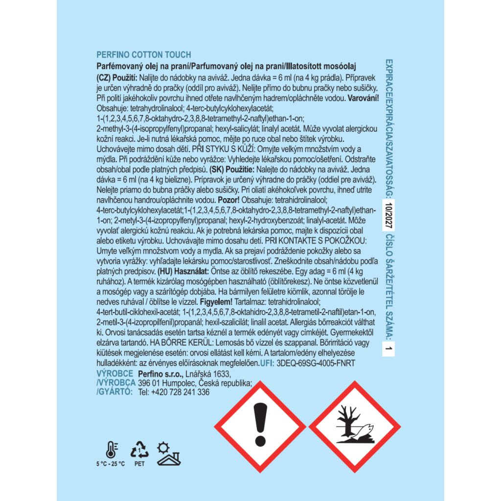 Na rozdíl od aviváže nezatěžuje vlákna ani nezanechává zbytky. Parfém na praní je šetrný, koncentrovaný a stačí ho jen pár kapek. Provoní prádlo na dny, někdy i týdny dopředu.